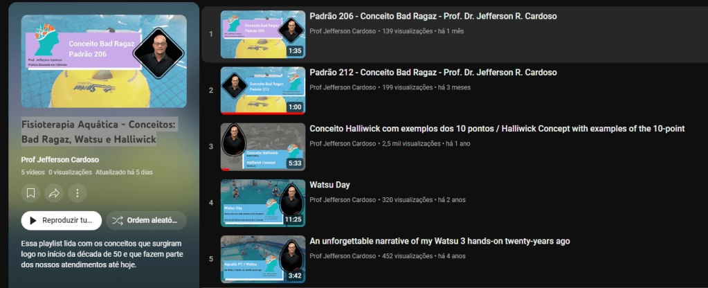 Confira abaixo os vídeos da Playlist Fisioterapia Aquática – Conceitos: Bad Ragaz, Watsu e Halliwick.
